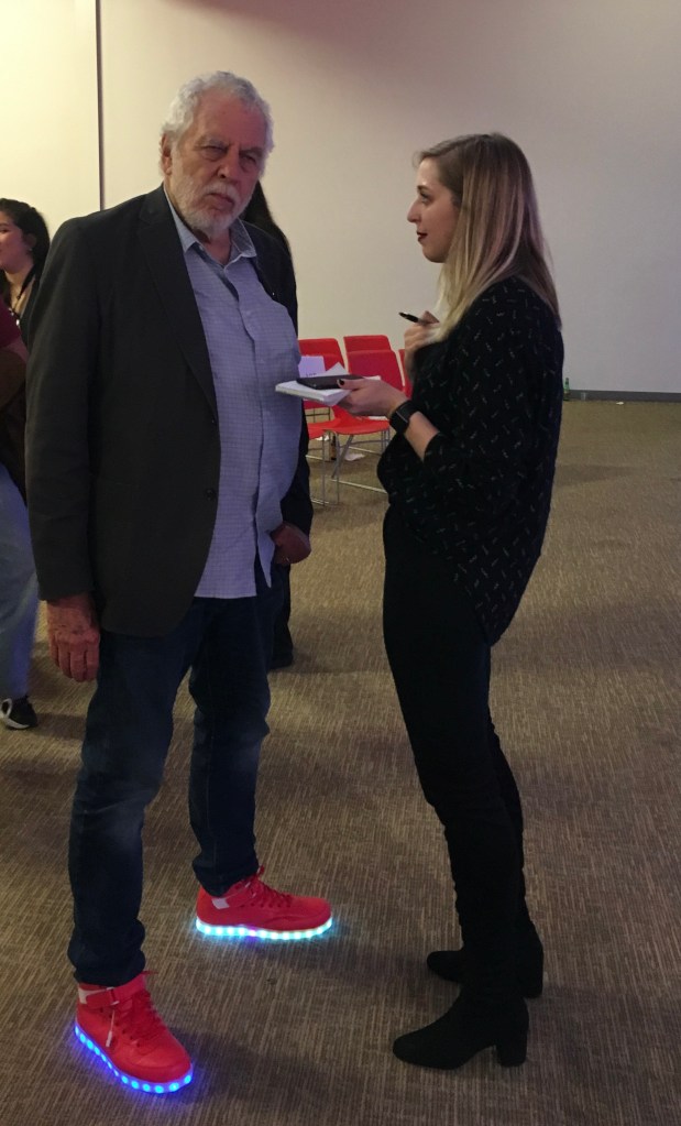 Me (on right) many years ago interviewing Nolan Bushnell (left), founder of Atari and Chuck E. Cheese.
